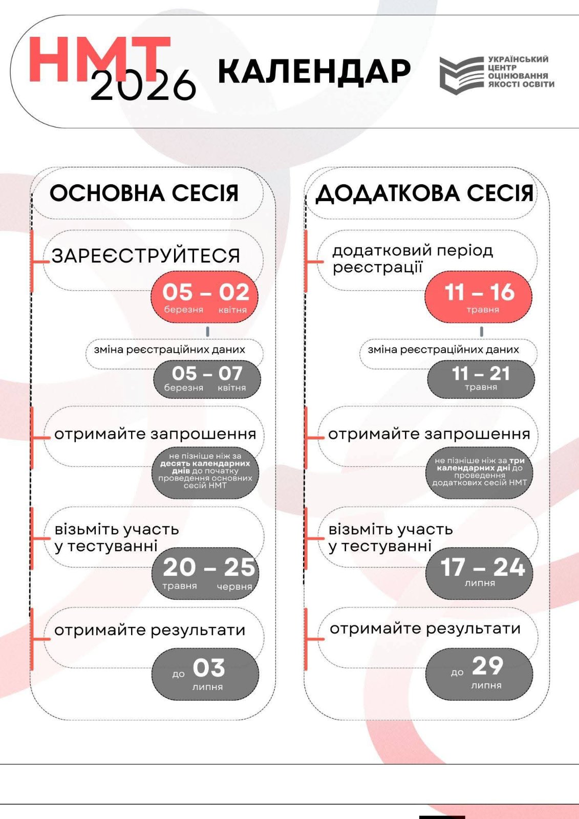 Календар НМТ 2026