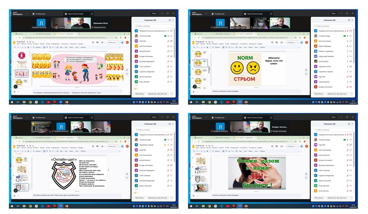 24 вересня 2025 року для учнів 5-А класу (класний керівник Золотуха Л.І.) соціальний педагог Коляда Р.В. провів класну годину на тему "Скажемо разом "НІ" булінгу!", під час якого учні вчилися розпізнавати прояви булінгу та шукати способи йому протидіяти. Школярі активно брали участь у вікторині «Норм \ Стрьом», обговорювали різні життєві ситуації та створили символічний «Щит захисту», що об’єднав їх навколо цінностей дружби та взаємоповаги.