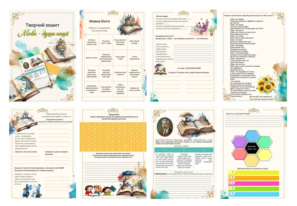 В рамках Всеукраїнського місячника шкільних бібліотек "Рідна мова – наша зброя і наш оберіг!" бібліотекою Валківського ліцей спільно з учнями 8-В класу (класний керівник Романенко Я.В.) організовано створення творчого зошиту "Мова - душа нації".