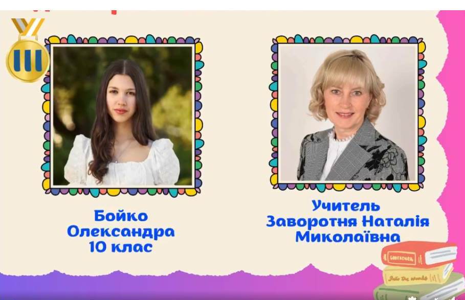 За рішенням журі II етапу (обласного) Всеукраїнської учнівської олімпіади з правознавства БОЙКО Олександра, учениця 10-А класу, виборола почесне ІІІ місце серед найкращих юних знавців права нашої області.